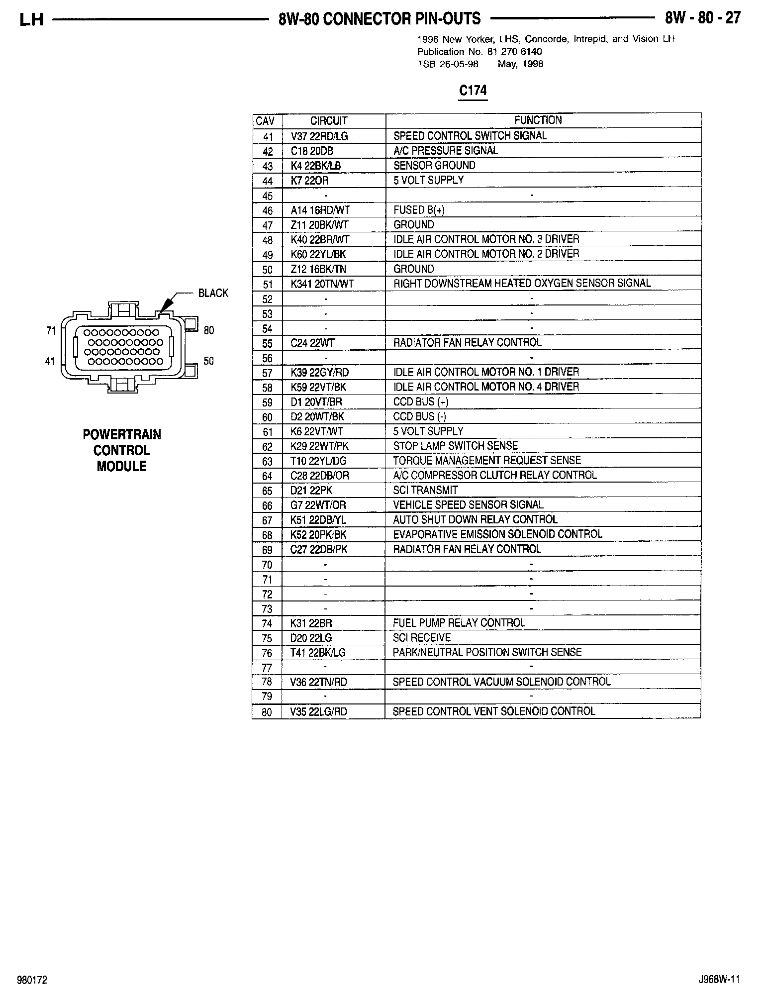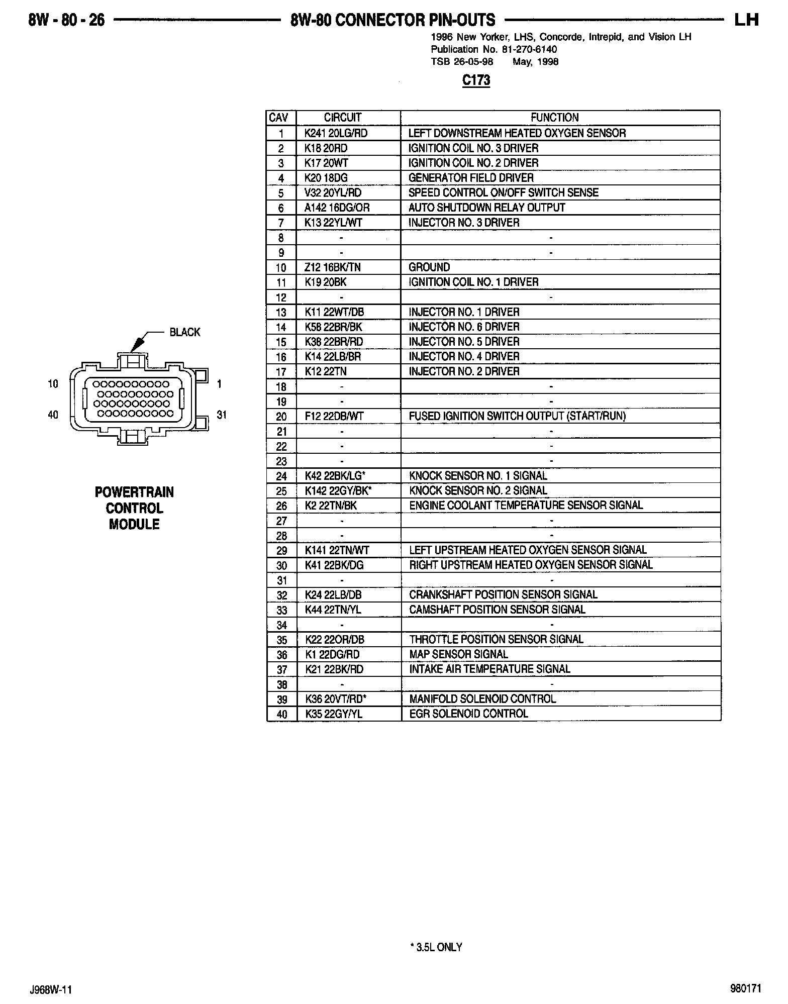 Home >> Eagle >> 1996 >> Vision V6-201 3.3L >> Repair and Diagnosis >> Powertrain Management >> Computers and Control Systems >> Relays and Modules - Computers and Control Systems >> Engine Control Module >> Technical Service Bulletins >> All Technical Service Bulletins >> Engine Controls - PCM Wiring Update