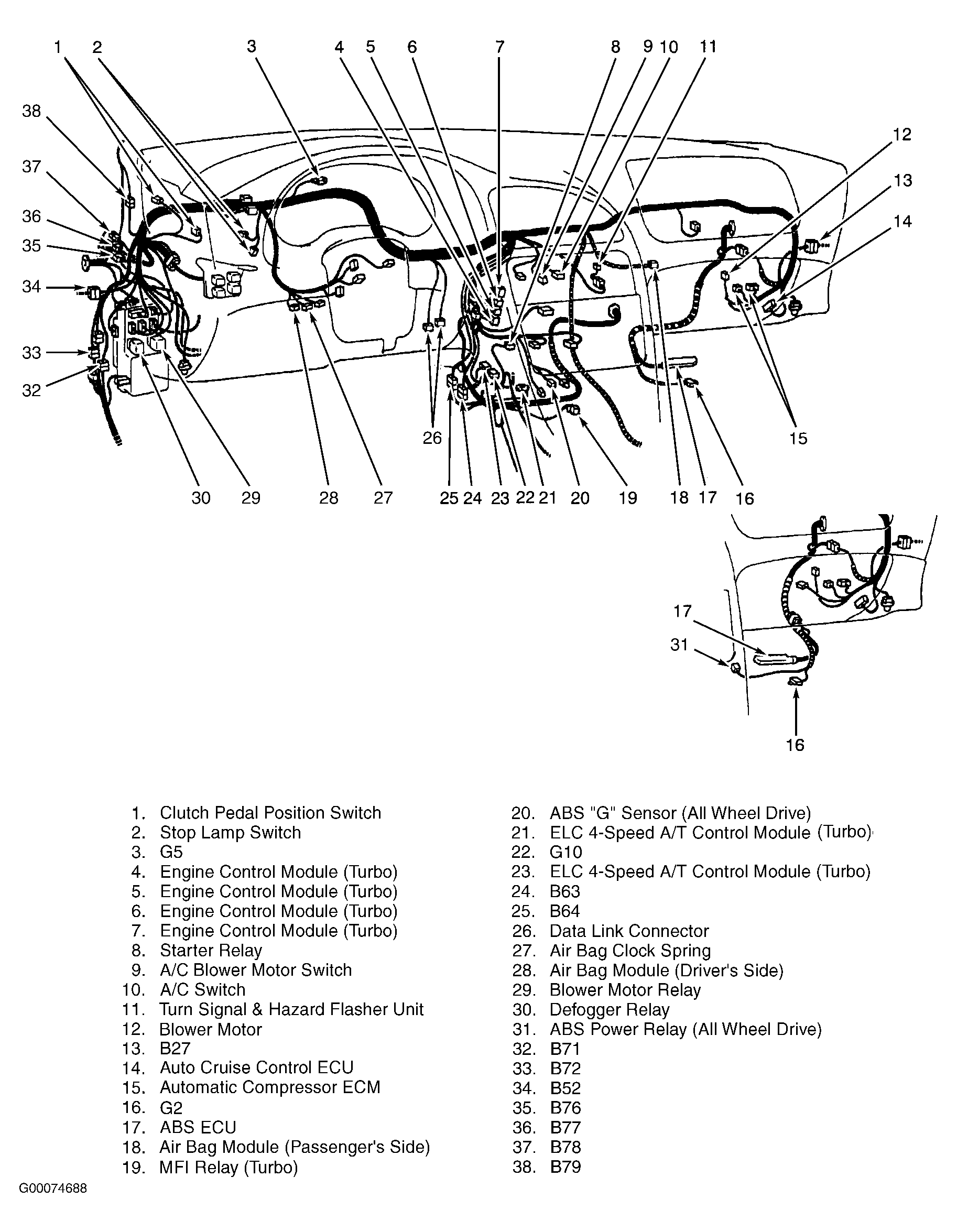 | Engine Control Module (Turbo) | Under center console. See Figure . |