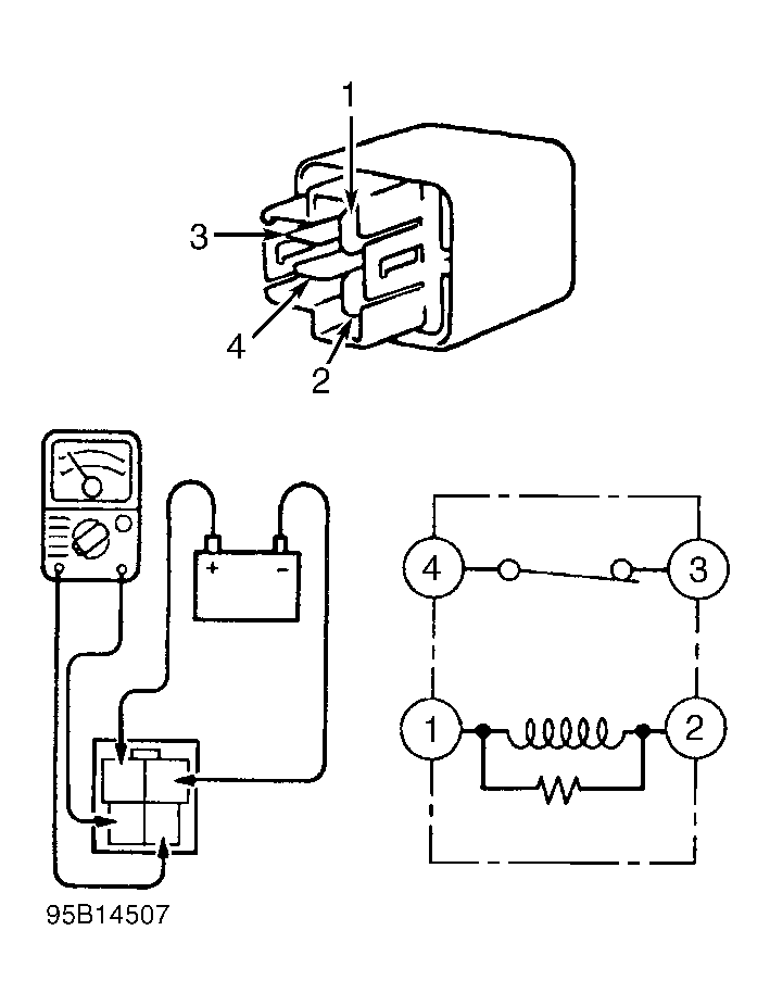 - Disconnect starter relay and ensure connector is clean and not damaged. See Figure . Using DRB scan tool in ohmmeter mode, check resistance on starter relay connector terminal No. 1 (Green/Black wire). See Fig 2 . If resistance is less than 5 ohms, go to next step. If resistance is more than 5 ohms, repair open Green/Black wire.
