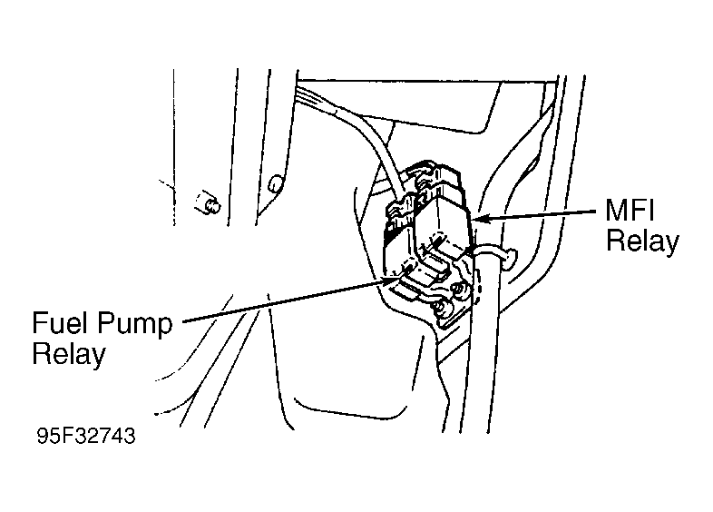 Fuel pump relay receives battery voltage from the ignition switch on 2 Black/White wires. ECM controls the ground circuit on the White/Red wire. The Black/Blue wire supplies voltage to fuel pump when fuel pump relay is energized. Fuel pump relay is located on passenger's side of center console, just in front of emergency brake lever. See Fig 1 .