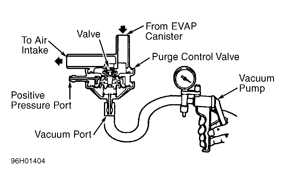 - With no vacuum applied, air should not pass through purge control valve. Apply at least 8 in. Hg of vacuum on purge control valve. Air should now pass through purge control valve. Remove vacuum pump from vacuum port.