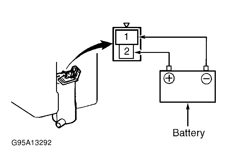 With washer motor installed, fill washer tank with water. With battery connected as illustrated, ensure water squirts out strongly. See Fig 1 .