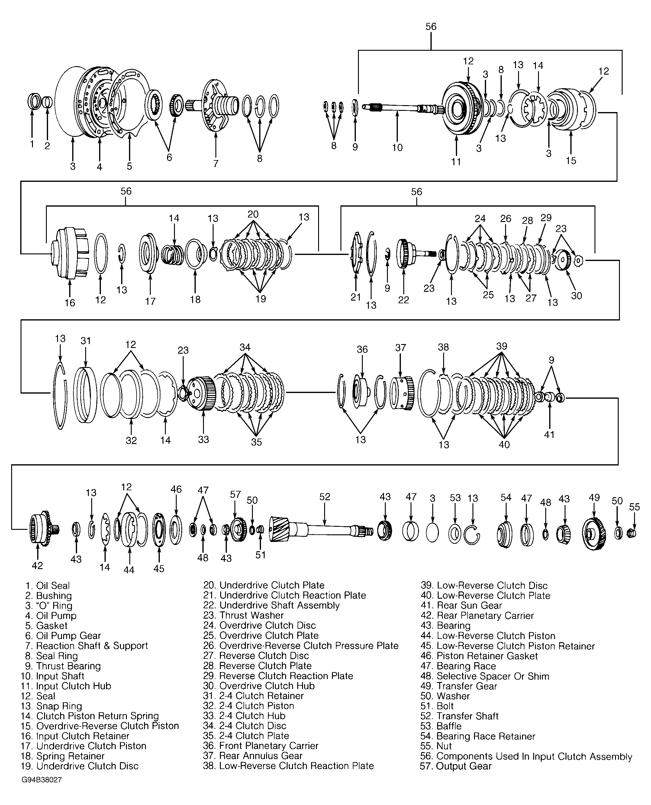 - To complete final assembly, reinstall overdrive and reverse clutch components. Ensure all clutch components are installed in original location as when clutch clearances were checked.