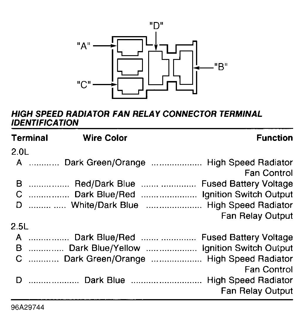 | Low Speed Radiator Fan Relay Connector | ||