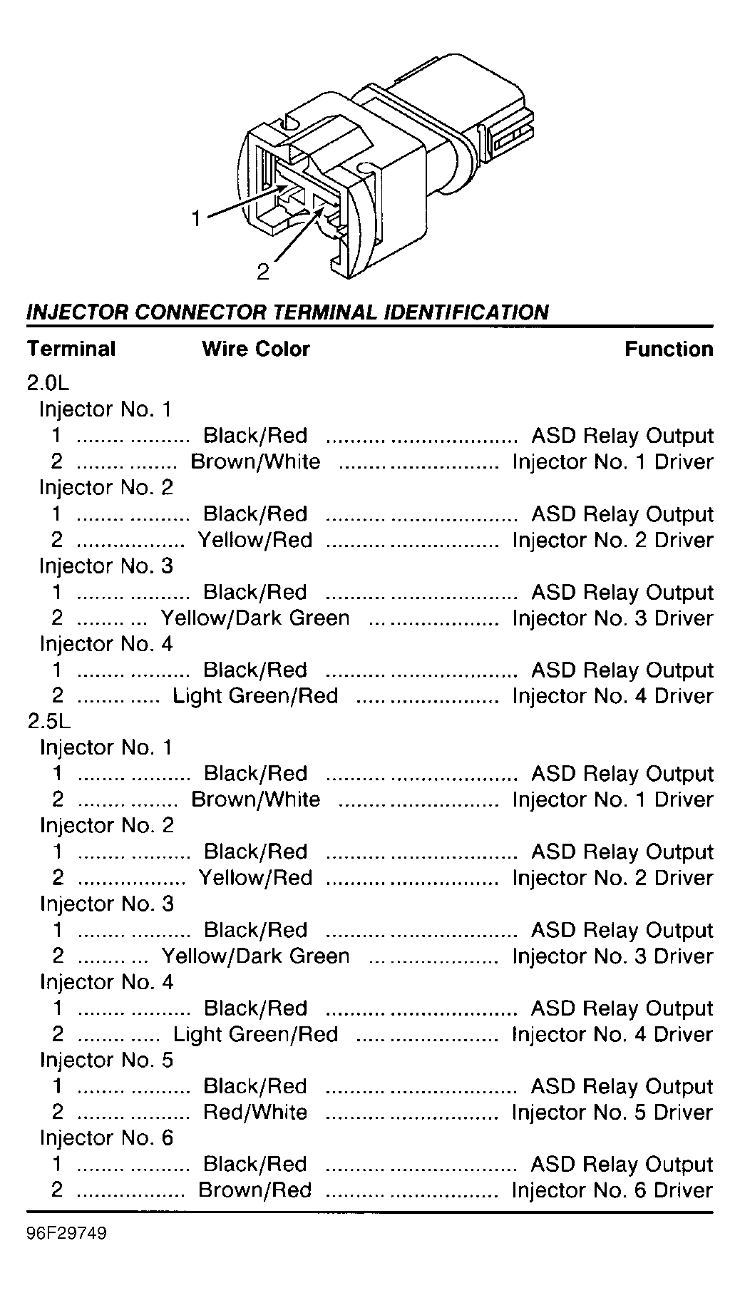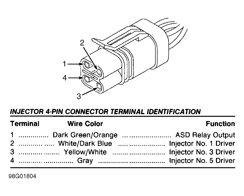 | Injector 4-Pin Connector (PCM Side) | ||