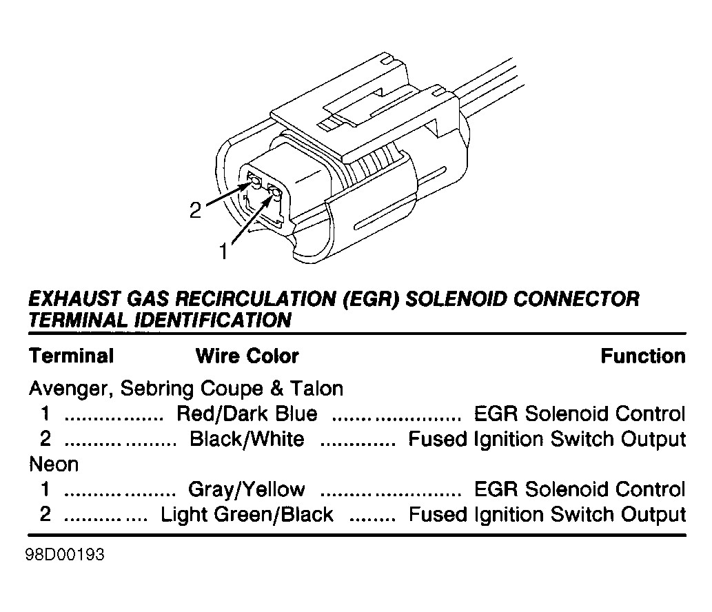 Fig 19: Identifying Exhaust Gas Recirculation (EGR) Solenoid Connector (Avenger, Neon, Sebring Coupe & Talon)