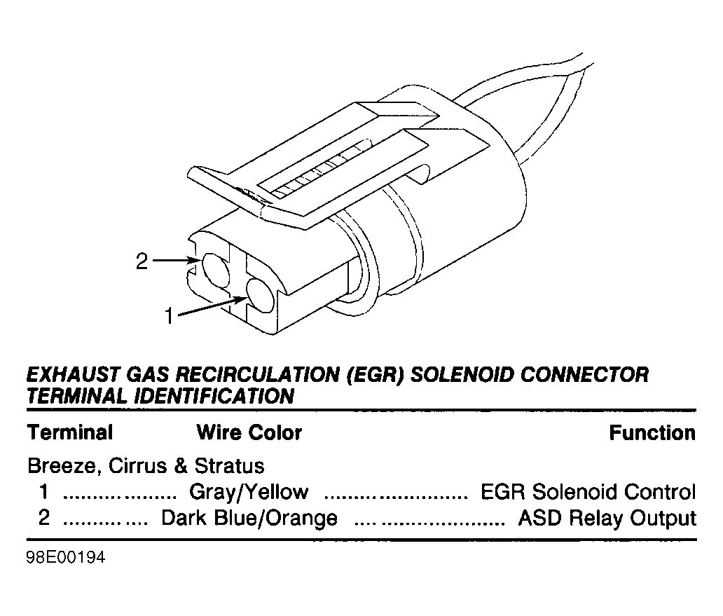Fig 20: Identifying Exhaust Gas Recirculation (EGR) Solenoid Connector (Breeze, Cirrus, Sebring Conv. & Stratus)
