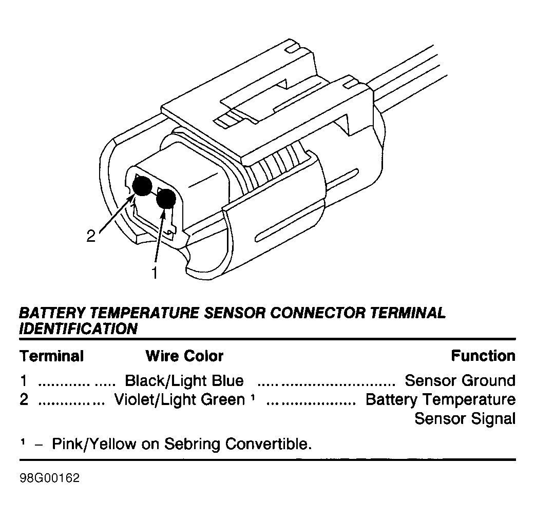 Fig 6: Identifying Battery Temperature Sensor Connector (Breeze, Cirrus, Neon, Sebring Convertible & Stratus)