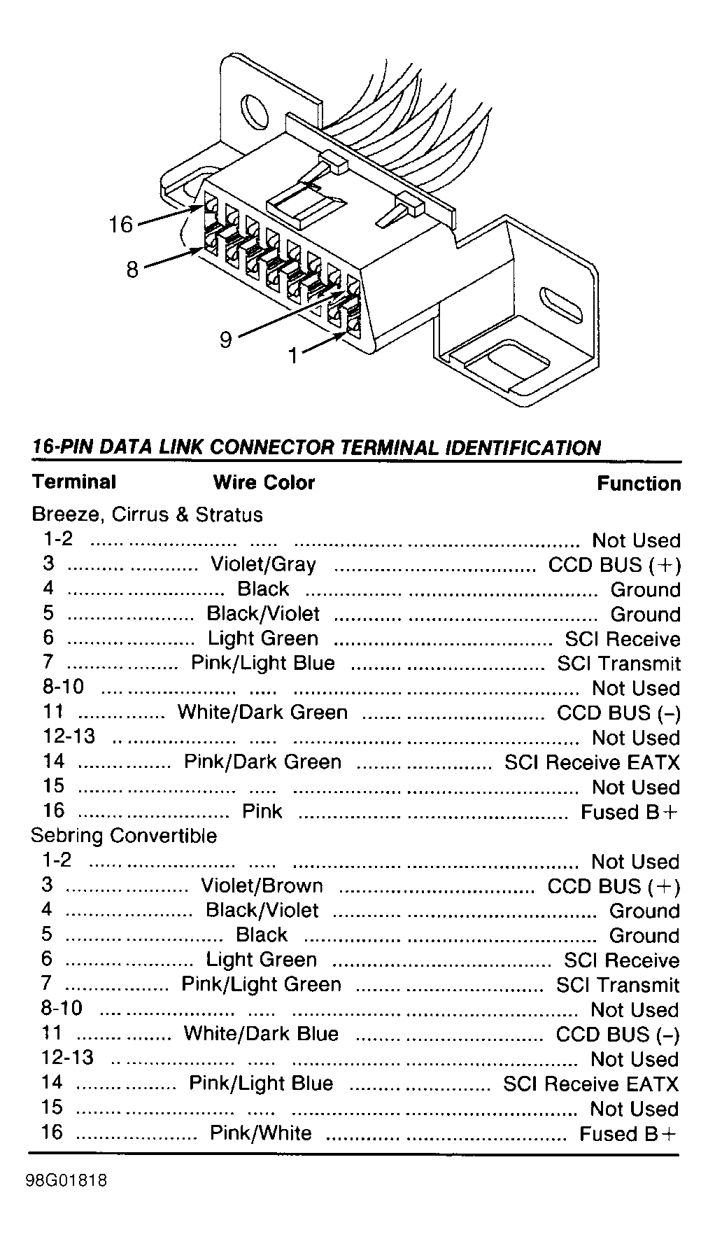 | Avenger, Breeze, Cirrus, Sebring Coupe, Sebring Conv., Stratus & Talon | Fig 16 | |