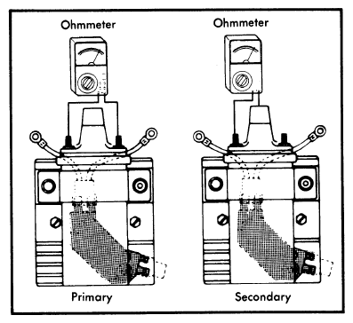 Fig 1: Ohmmeter Hookup for Ignition Coil Primary and Secondary Resistance Check