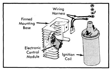 The control module and ignition coil are mounted on a finned, cast aluminum base which not only cools the units, but also provides a system ground. See Figure.