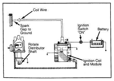 2. Crank engine and check for sparks at gap to ground. If previous tests have disclosed no problem and no spark exists at gap, replace control module.
