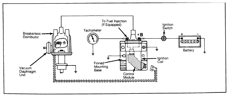 The control module and ignition coil are mounted on a finned, cast aluminum base which not only cools the units, but also provides the system ground. See Figure.