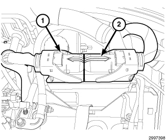 2. Disconnect the Powertrain Control Module (PCM) electrical connectors (1 and 2).