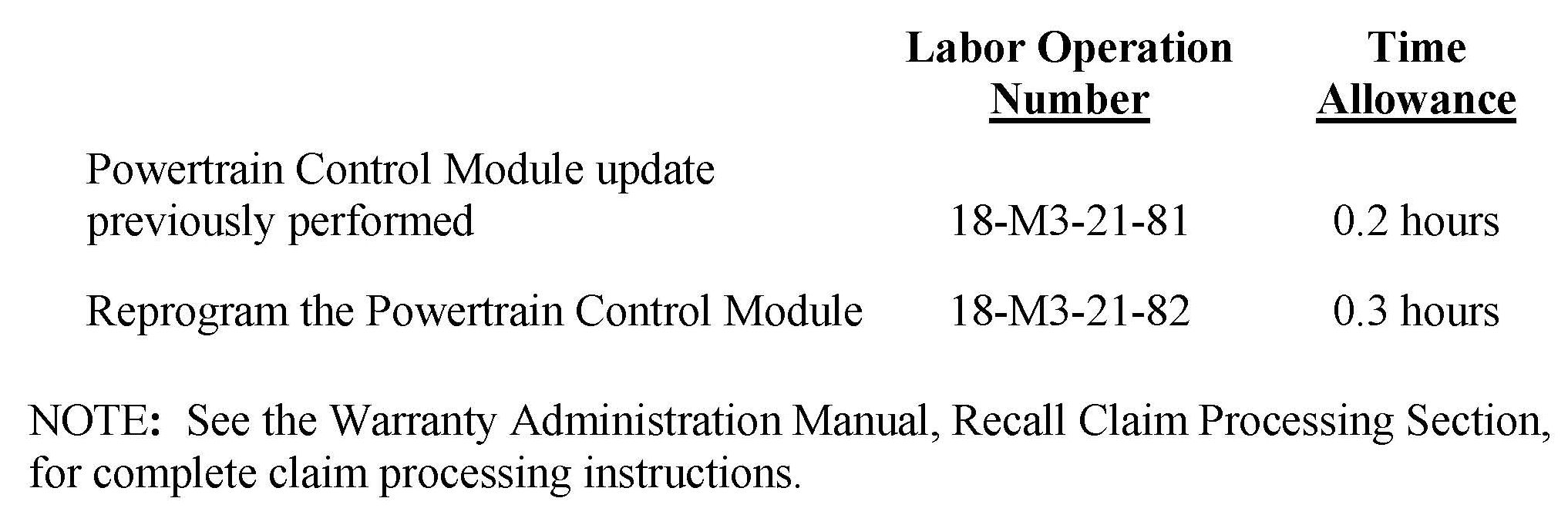 Use one of the labor operation numbers and time allowances shown.