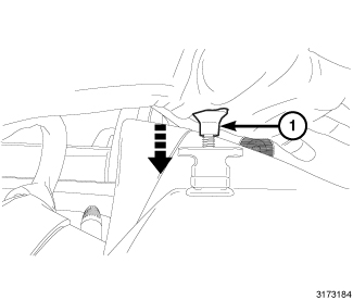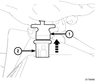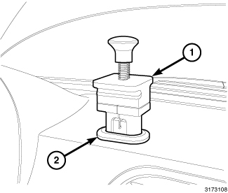 3. Set the navigation pod remover tool MLR-10313 or equivalent (1) on the navigation port (2) on the instrument panel.