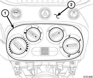 18. If required, lightly lubricate the control shafts to housing contact points on the front of the A/C heater control (1) using Silicone Grease, available through Mopar.