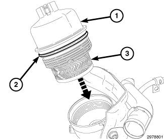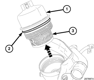 15. Install the new oil filter (3) into the oil filter cap (1).