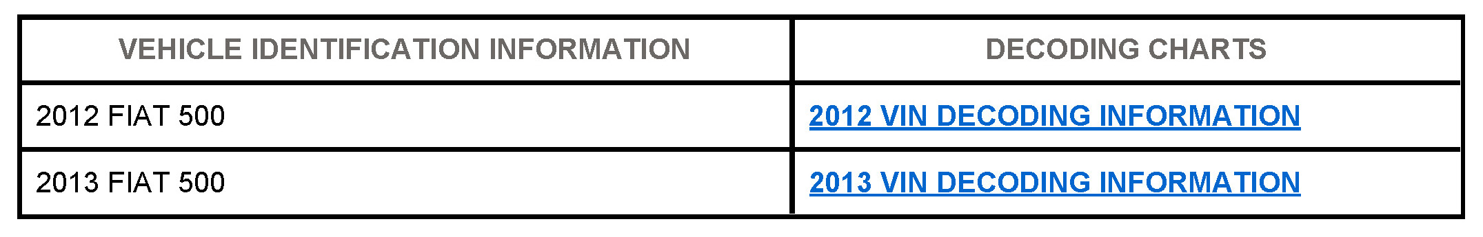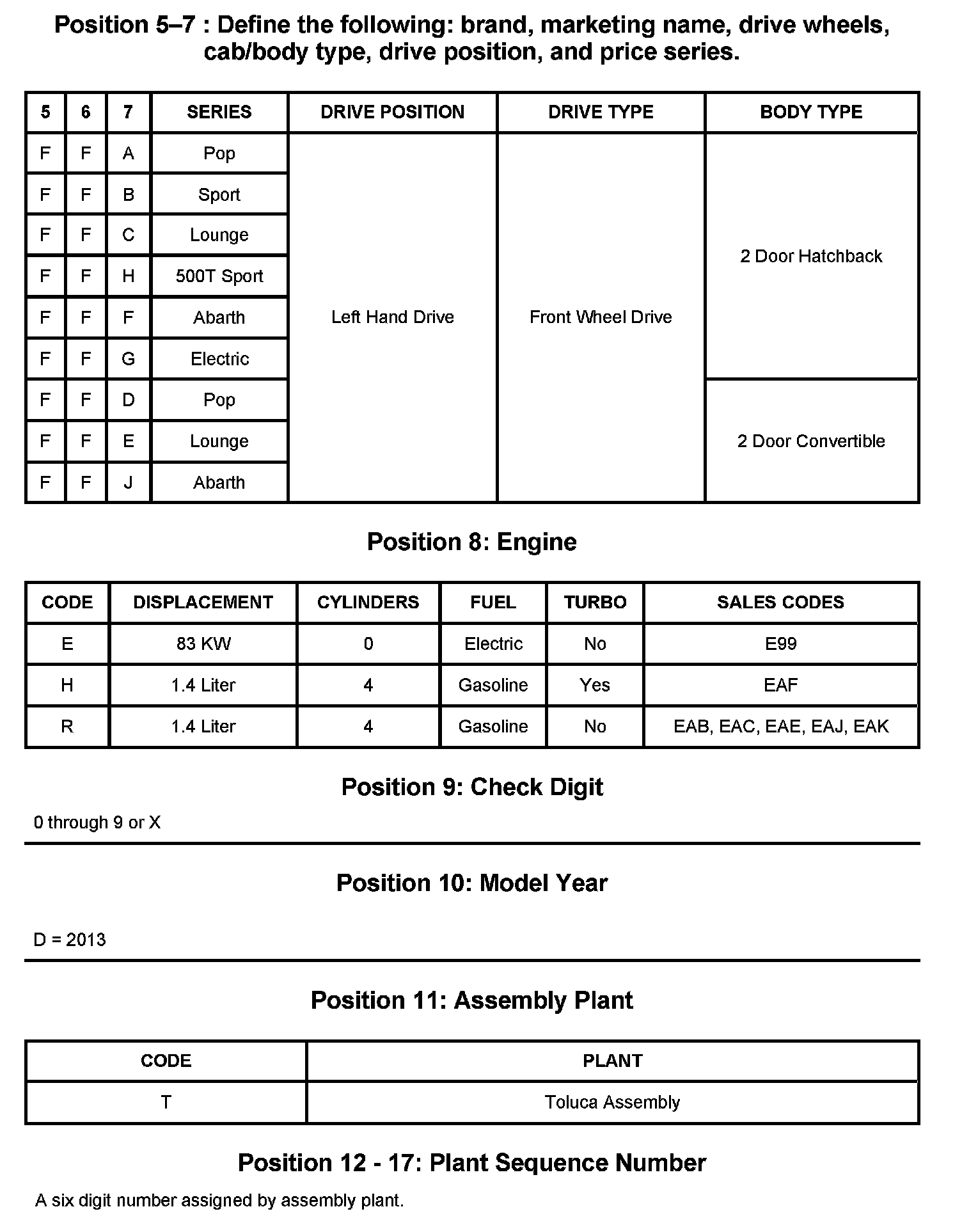 2013 VIN DECODING INFORMATION