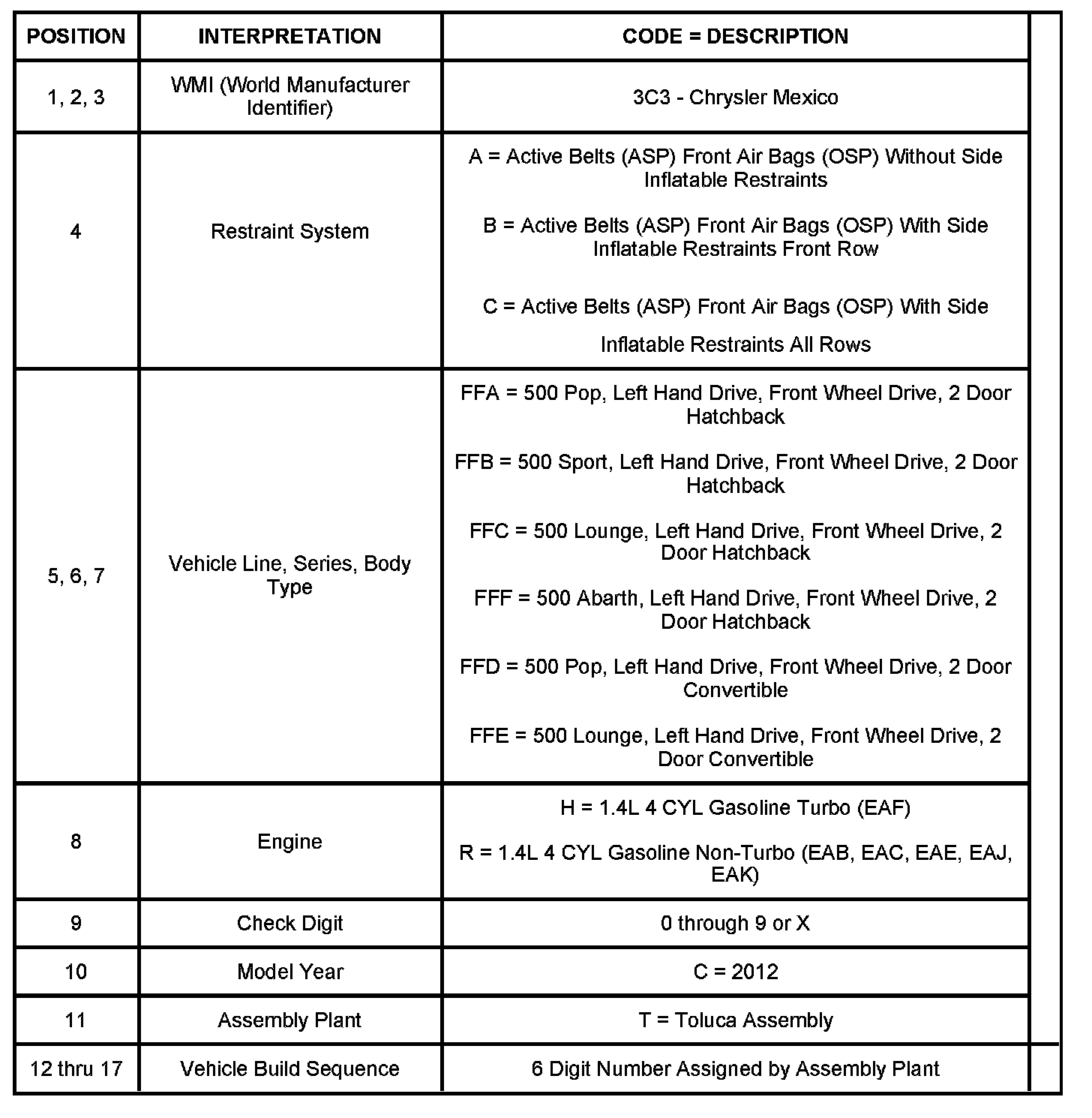 2012 VIN DECODING INFORMATION