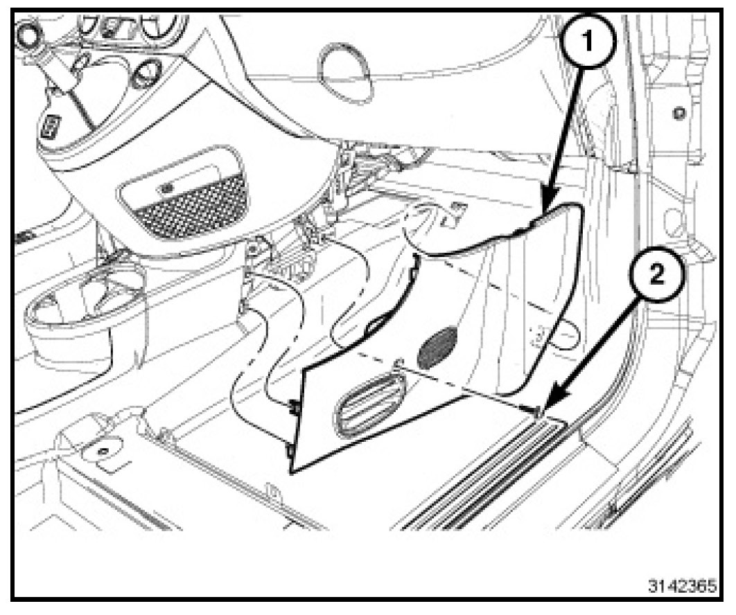 8. Install and tighten the screw (2) that secures the closeout cover to the center console support structure of the instrument panel. Tighten the screw securely.
