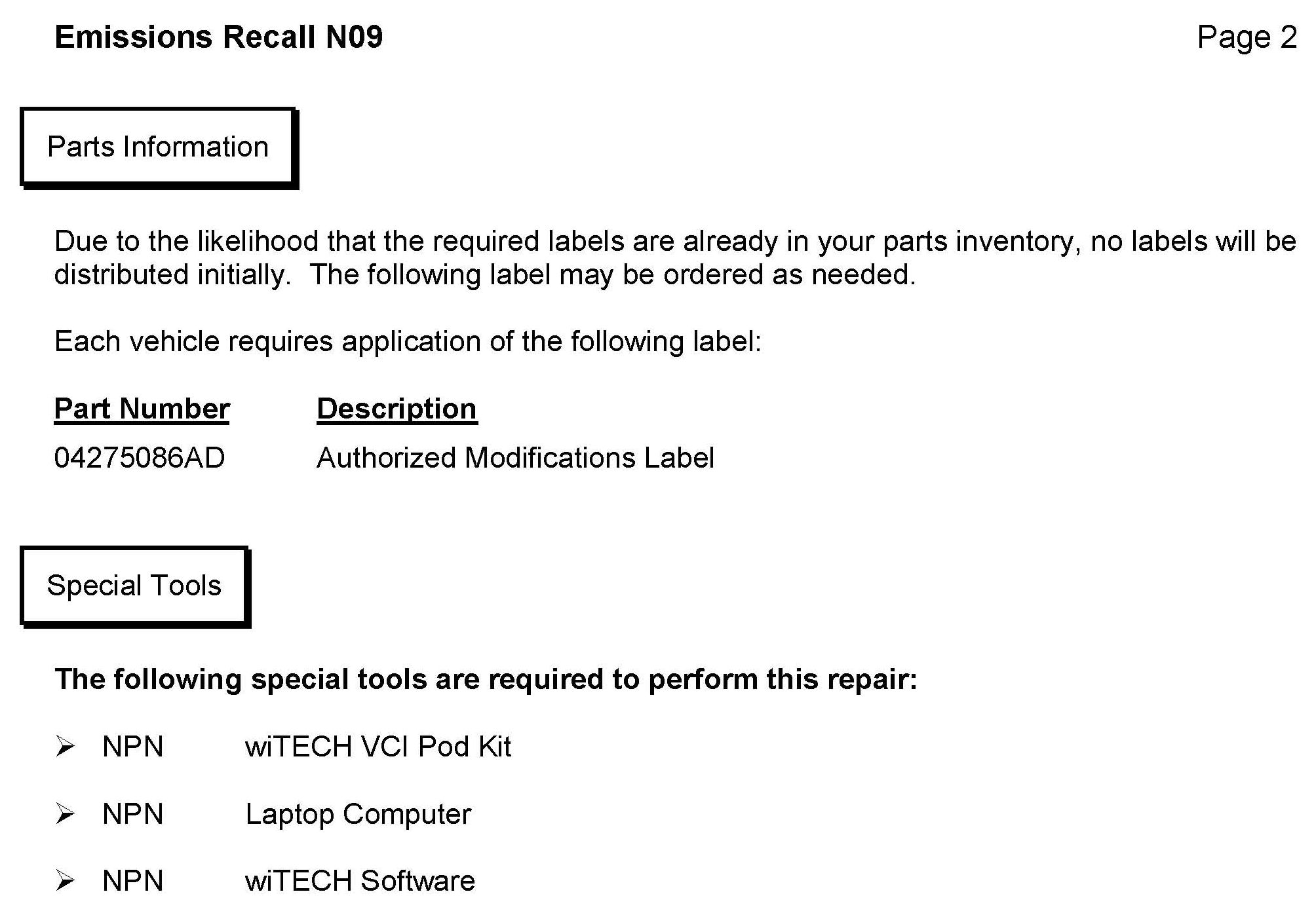 Canada - Recall - ECM Update For Emissions Calibration