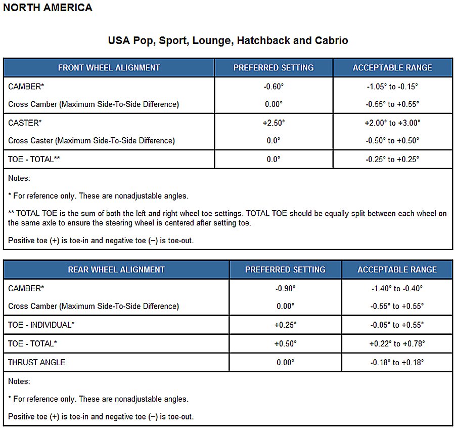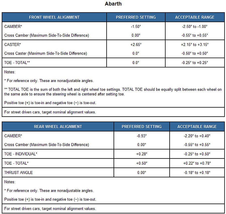 Home >> Fiat >> 2013 >> 500e ELE-Electric Engine >> Repair and Diagnosis >> Specifications >> Mechanical Specifications >> Alignment >> Wheel Alignment