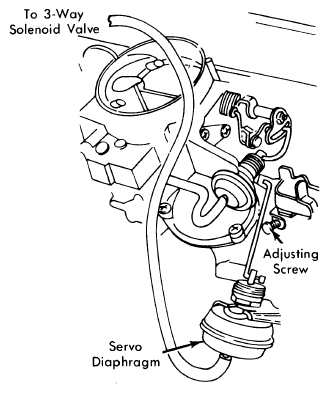 - If not, adjust engine speed by turning adjusting screw on servo diaphragm throttle lever until proper speed is obtained. See Fig 1. Reconnect all hoses to original position.