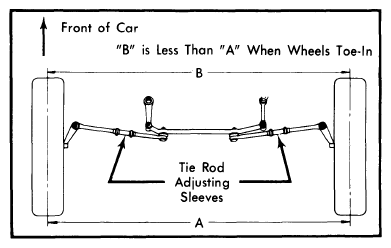 - If steering wheel is not centered with front wheels in straight ahead position, correct by shortening one tie rod adjusting sleeve and lengthening opposite sleeve. See Fig 2.