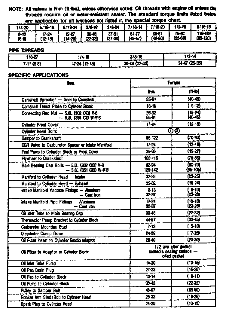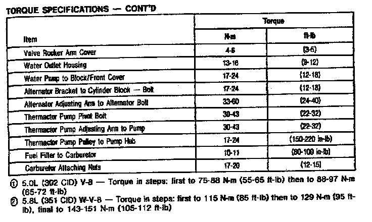 5.0L/5.8L V8 Engine Mechanical Torque: