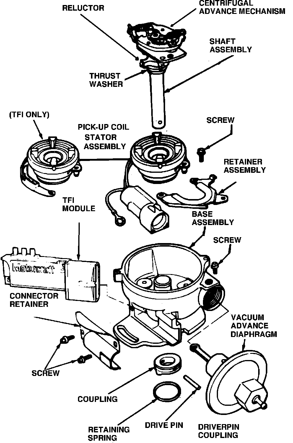 2. Remove two screws attaching TFI module to distributor housing, Fig. 2.