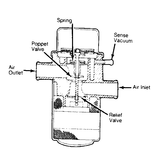 Air flows from air pump into diverter valve. This valve prevents backfiring, by stopping air injection flow during periods of high increase in manifold vacuum (such as during deceleration). Diverter valve dumps air supply to atmosphere for the first few seconds of deceleration.