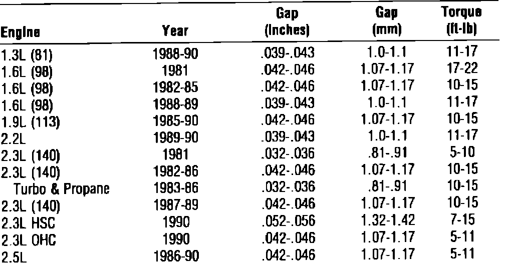 Spark Plug: Specifications