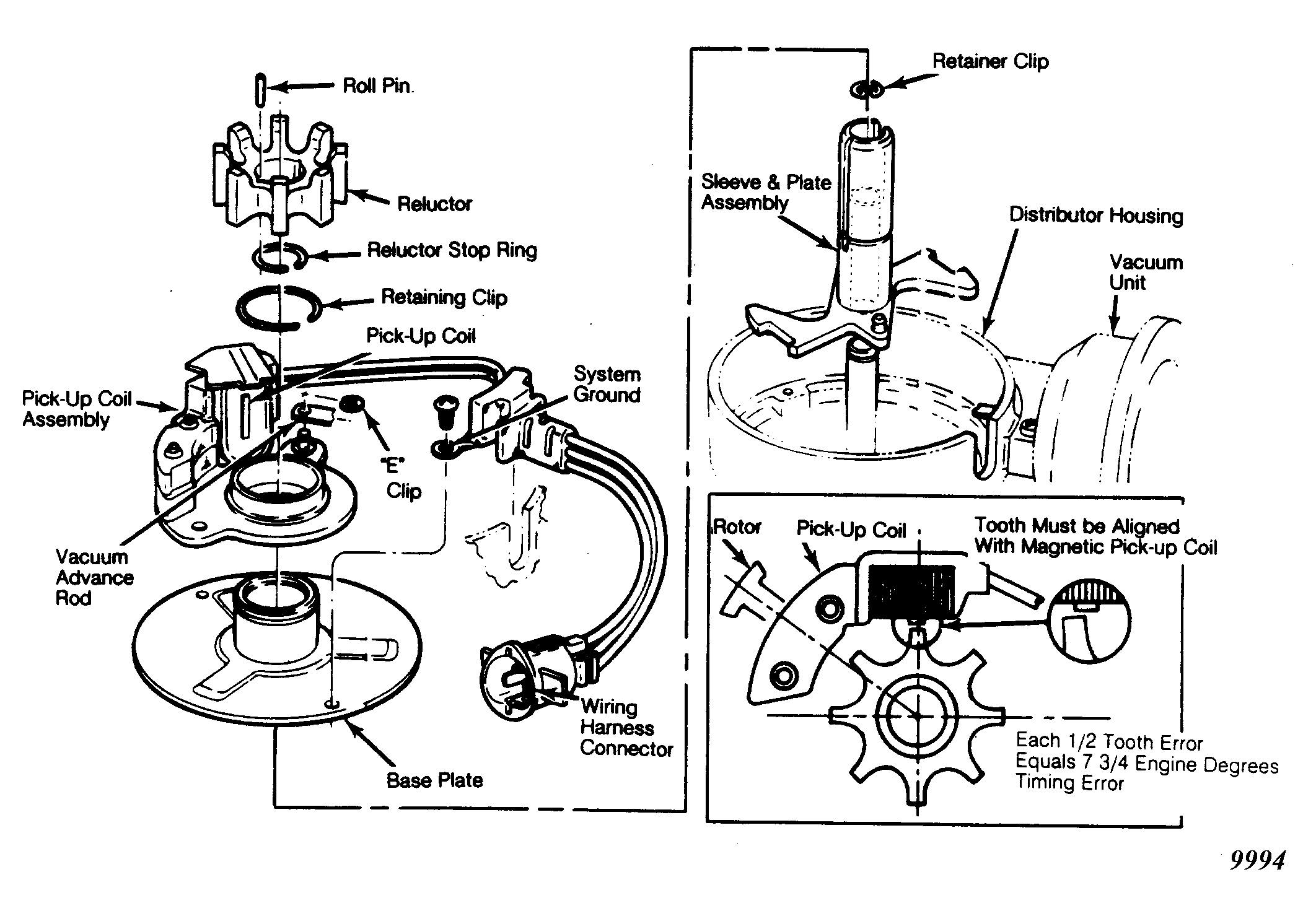 - Remove distributor cap, rotor and adapter (if equipped). Disconnect and plug vacuum advance hose(s). Disconnect distributor connector from wiring harness. Rotate engine to align stator assembly pole and any armature pole. See Figure.