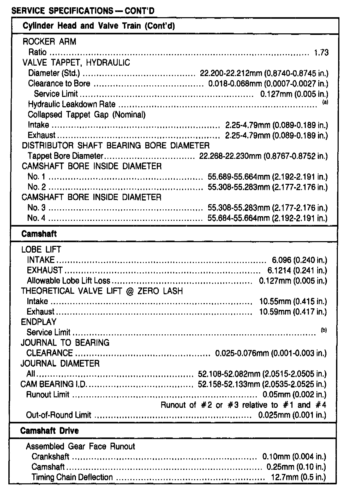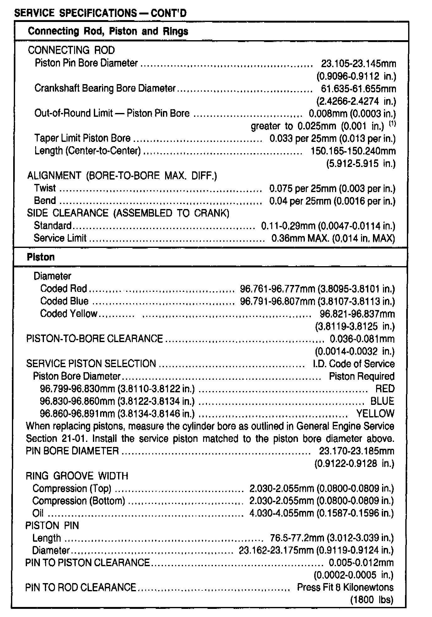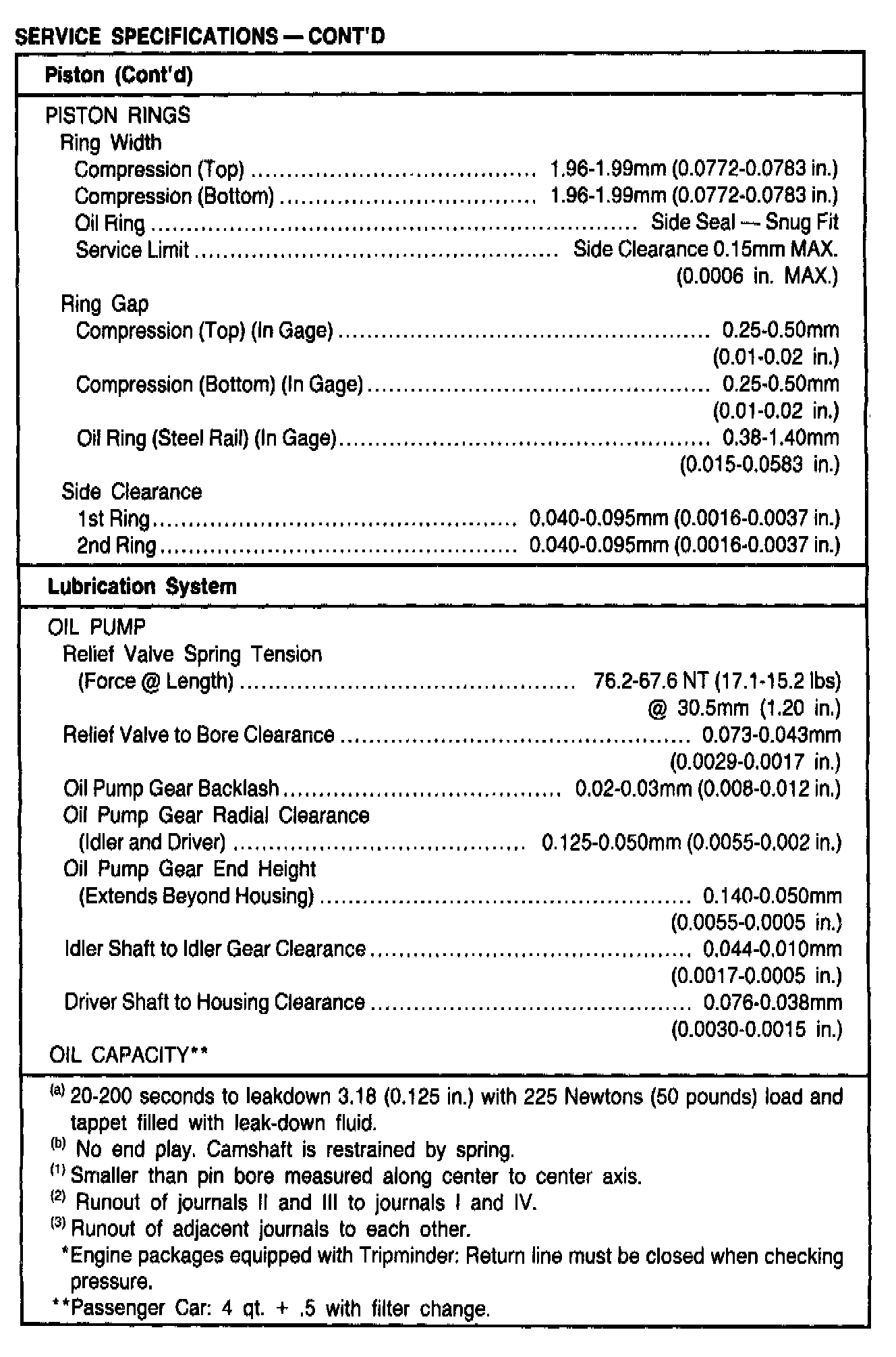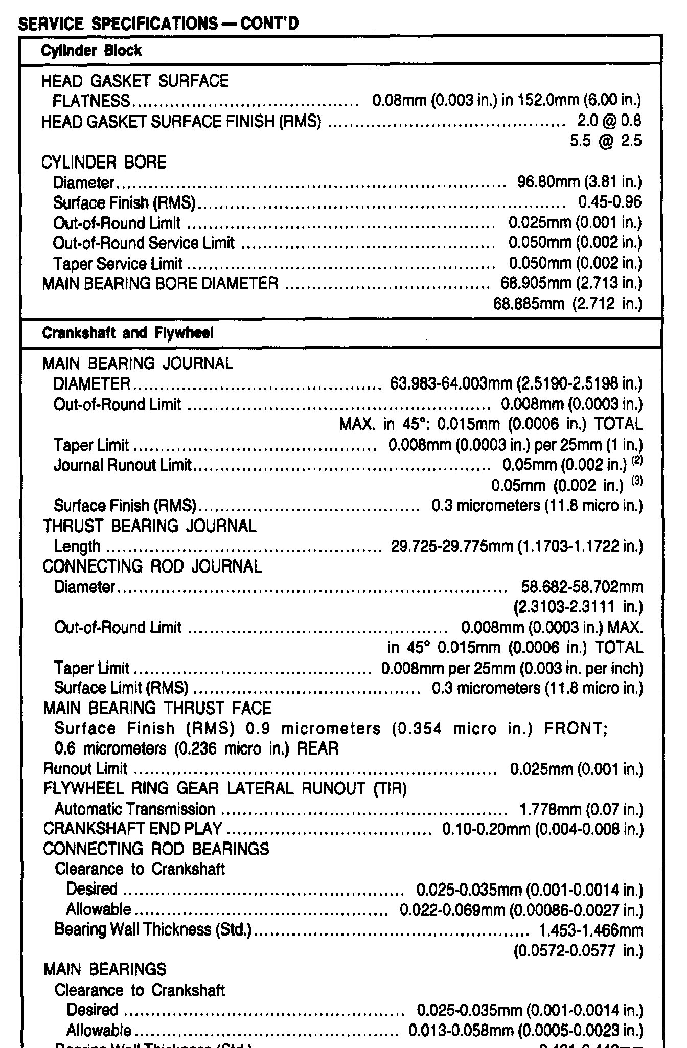General Engine Specifications