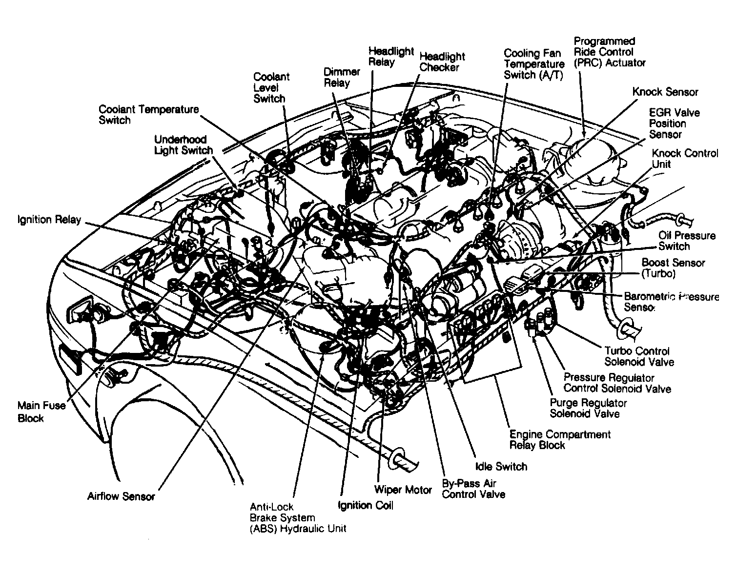 | Ignition Module (Turbo) | On left rear of engine bay, near ignition coil. |