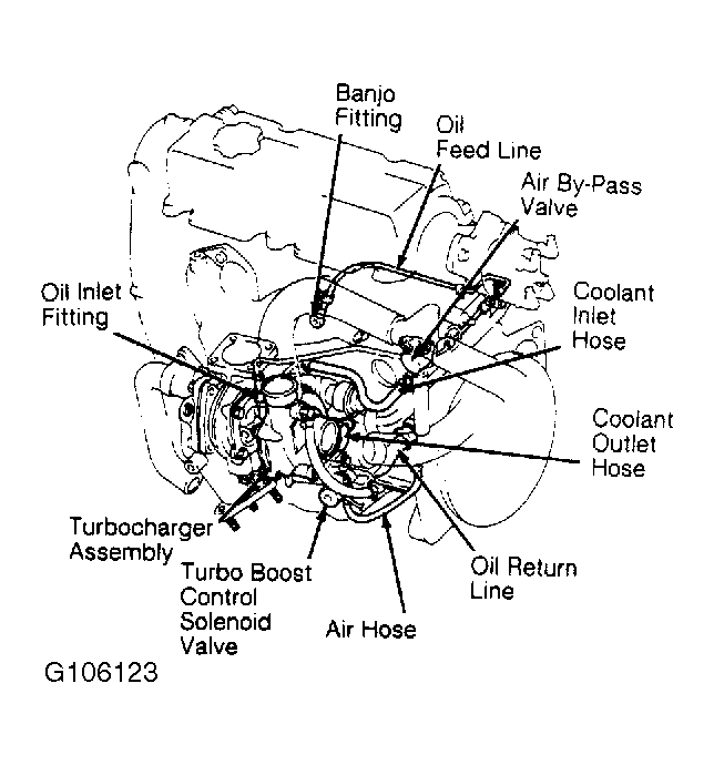 - Remove small air tube from turbocharger inlet air hose. Disconnect turbo boost control solenoid valve electrical connector. See Fig 1 .