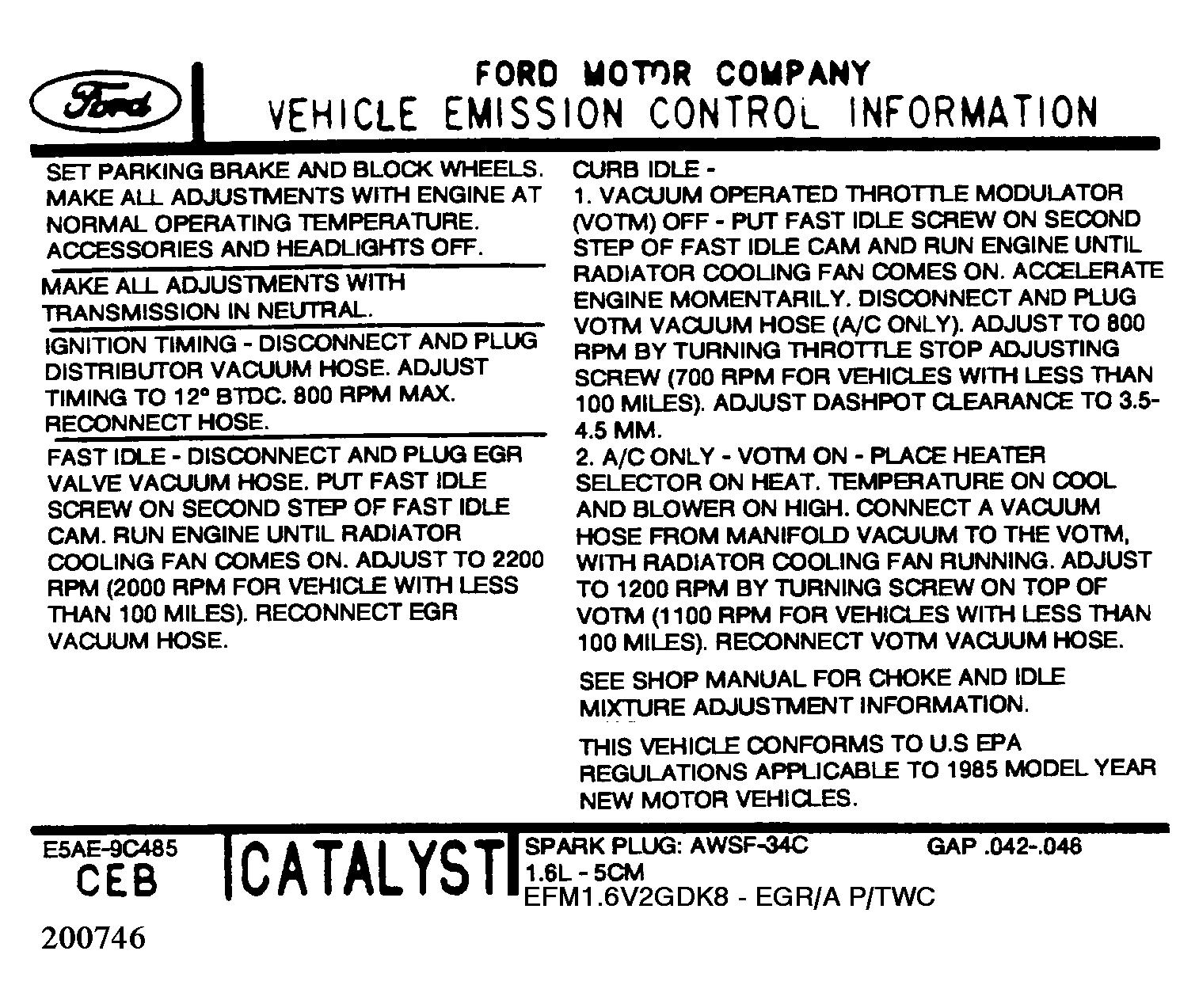 Home >> Ford >> 1989 >> Probe GL, Automatic >> Repair and Diagnosis >> Engine Performance >> Vacuum Diagrams >> Identification >> Calibration Number Identification