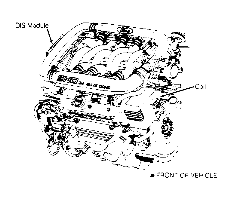The Distributorless Ignition System (DIS) consists of a crankshaft mounted Hall Effect Profile Ignition Pickup (PIP) sensor, a camshaft driven Hall Effect Cylinder Identification (CID) sensor, a 6 tower DIS coil, and a DIS ignition module. The DIS ignition system eliminates the distributor by using multiple coils.