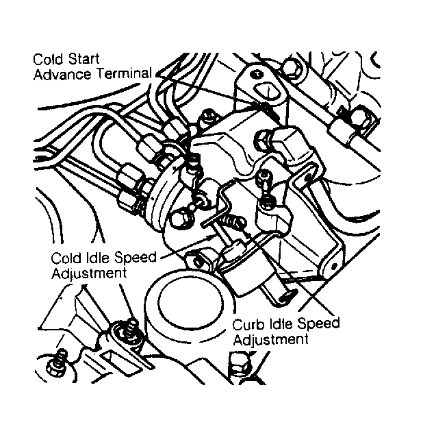 - Observe injection timing on dynamic timing meter. Injection timing should be 8.5° BTDC @ 2000 RPM. Apply battery voltage to cold start advance solenoid. Activating cold start advance solenoid terminal can increase engine speed. Adjust throttle if necessary.