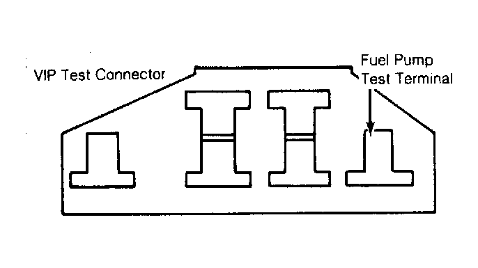 - Check fuel tank(s) for adequate fuel supply. Check for fuel leaks at fittings and lines. Install jumper lead to fuel pump test terminal of VIP test connector. See Figure . Use a test lead long enough to reach under vehicle. Install fuel pressure gauge. Turn ignition switch to the "RUN" position. Ground jumper lead and check fuel pressure. See FUEL PRESSURE SPECIFICATIONS . If fuel pressure is within specification, go to step 5). If fuel pressure is not within specification, go to step 2).