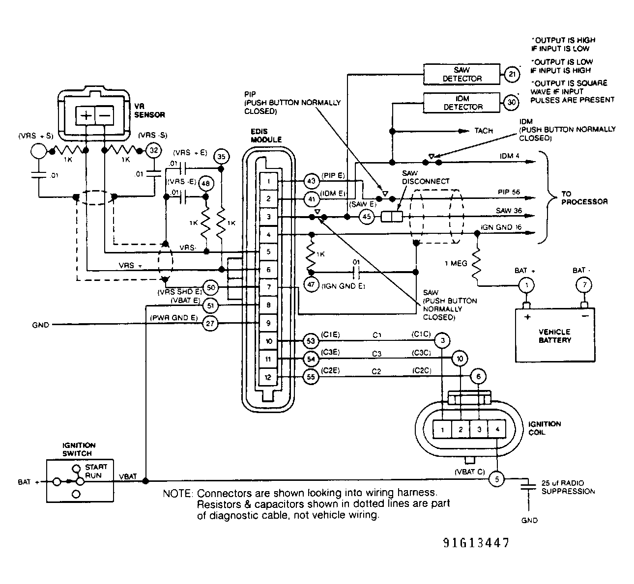 - SAW and IDM signal detectors in EDIS diagnostic cable will not work unless diagnostic cable battery leads are connected to battery.