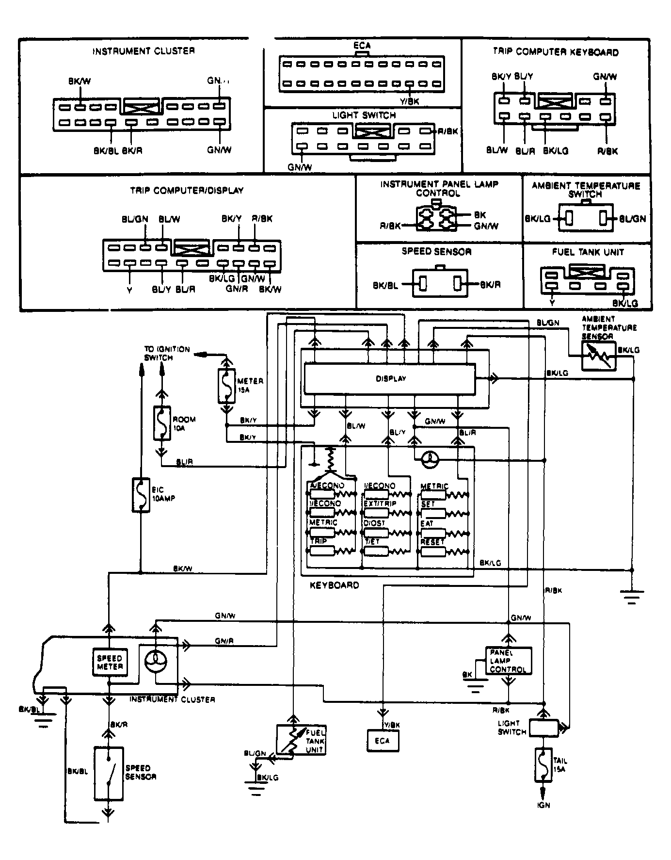 - If keyboard works, repair Black/Light Green wire between keyboard and electronic instrument cluster.