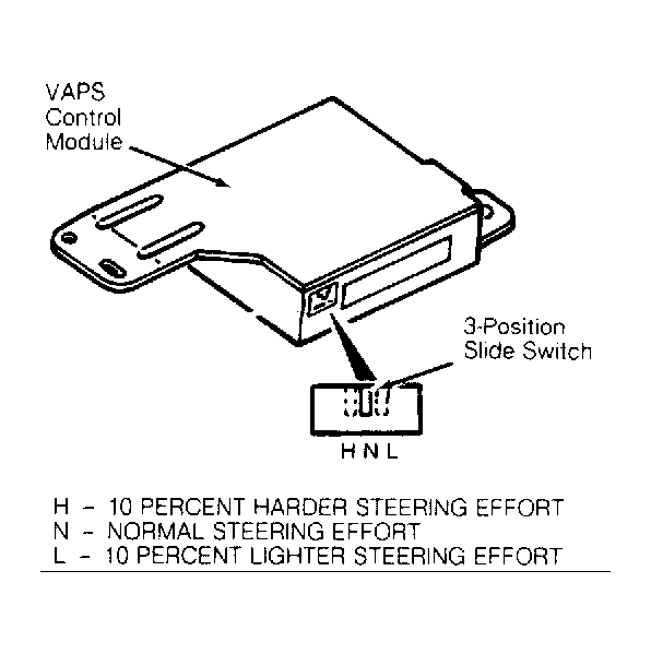 Repair any mechanical fault before testing or false diagnostic information may be obtained. Complete, in order, each test before going to PINPOINT TESTS or replacement of non-defective parts may result. Note location of 3-position slide switch on VAPS control module before entering diagnostics. See Fig 1 .