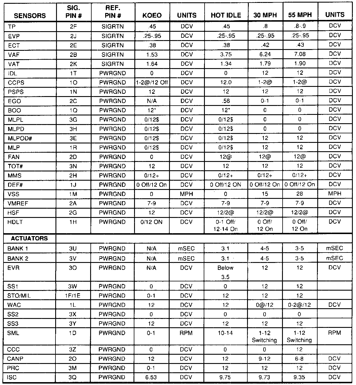 Normal Scan Data Values (Includes PID's)