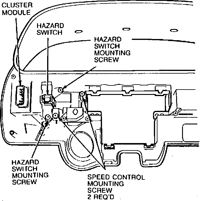 2. Remove two hazard switch-to-cluster module retaining screws, then the hazard switch.