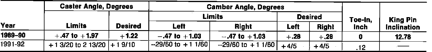 Front Wheel Alignment Specifications: