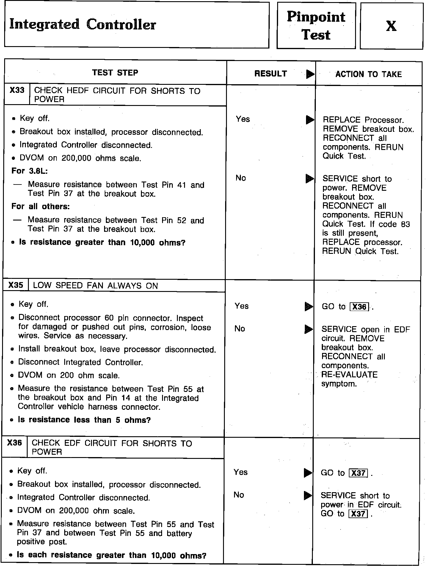 Pinpoint Test X33 Thru X36 - Integrated Controller:
