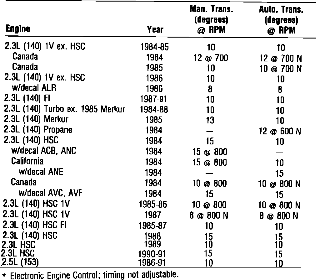 Ignition Timing: Specifications