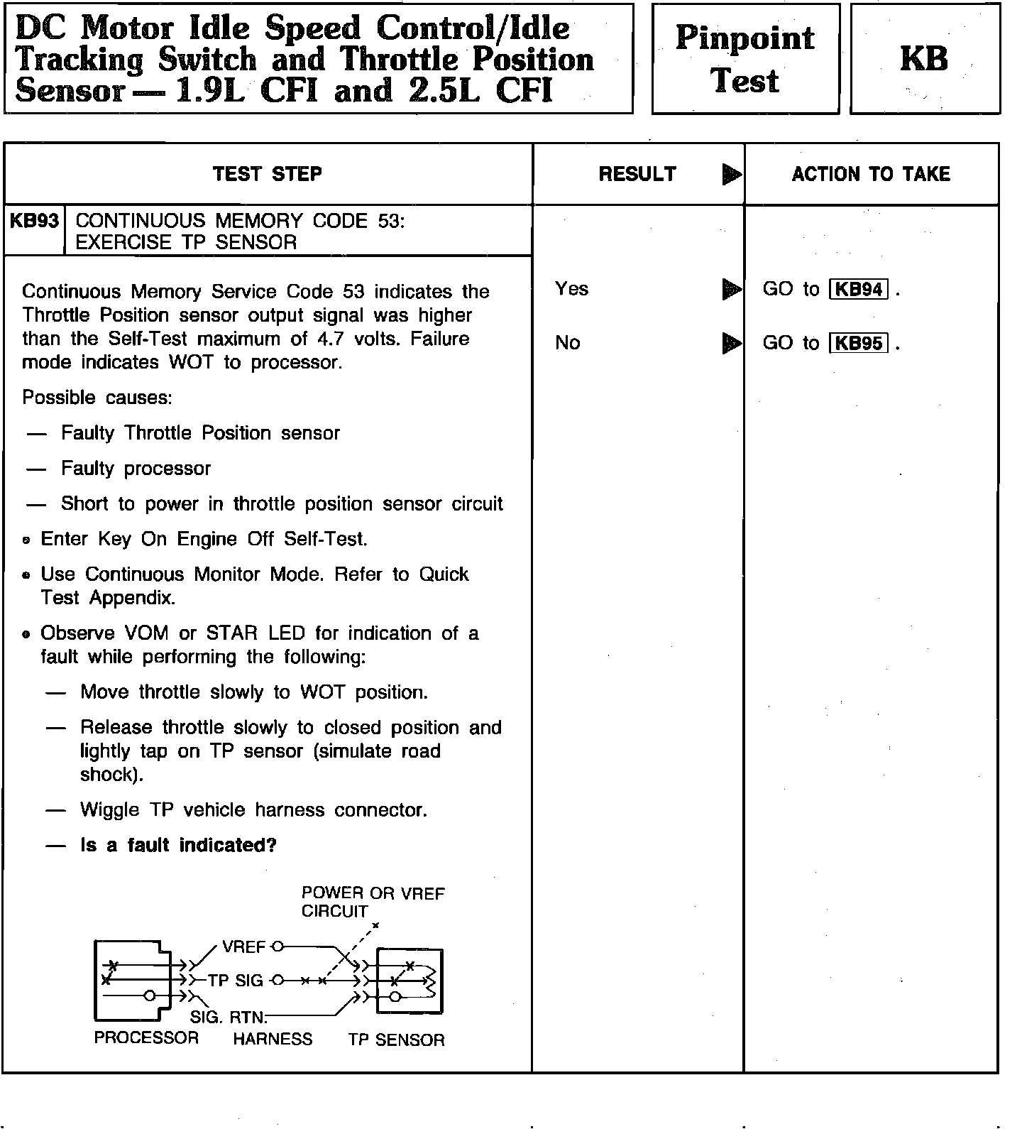 Pinpoint Test KB93 - DC Motor Idle Speed Control/Idle Tracking Switch/TPS: